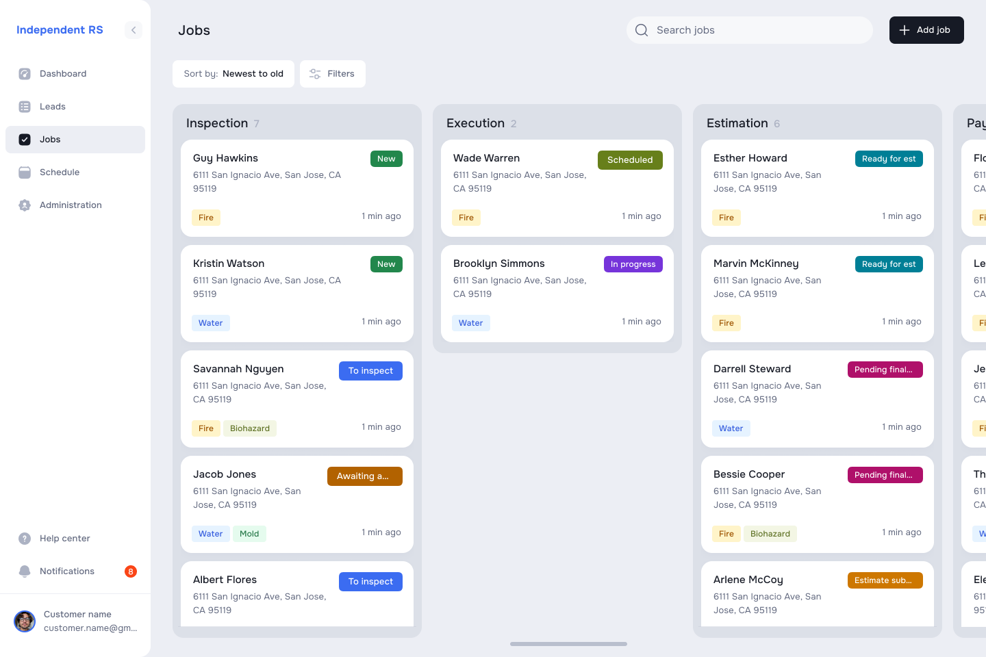 Track every opportunity from referral to job completion. Never lose a lead, miss a follow-up, or wonder where a job stands in your pipeline.