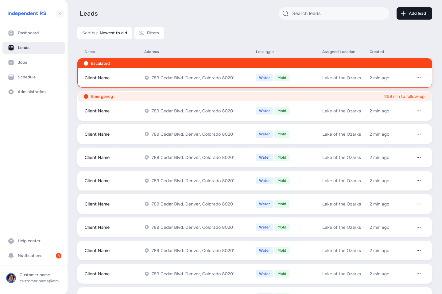 - Lead tracking with urgency indicators